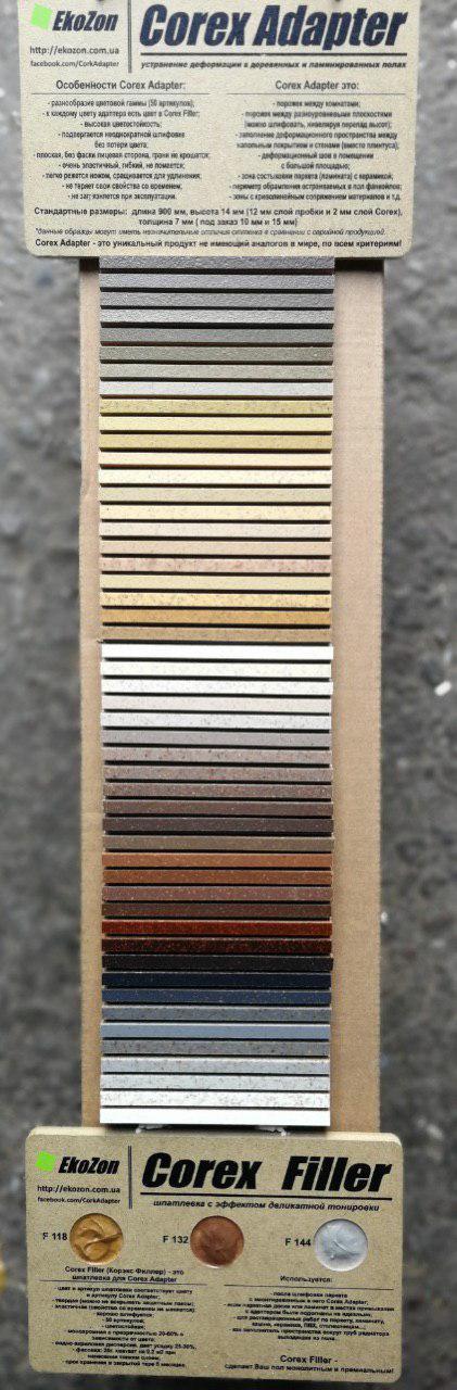 Corex Adapter красивим і дуже елегантним на підлозі. На верхню площину адаптера нанесено матовий еластичний лак, що перешкоджає його забрудненню.